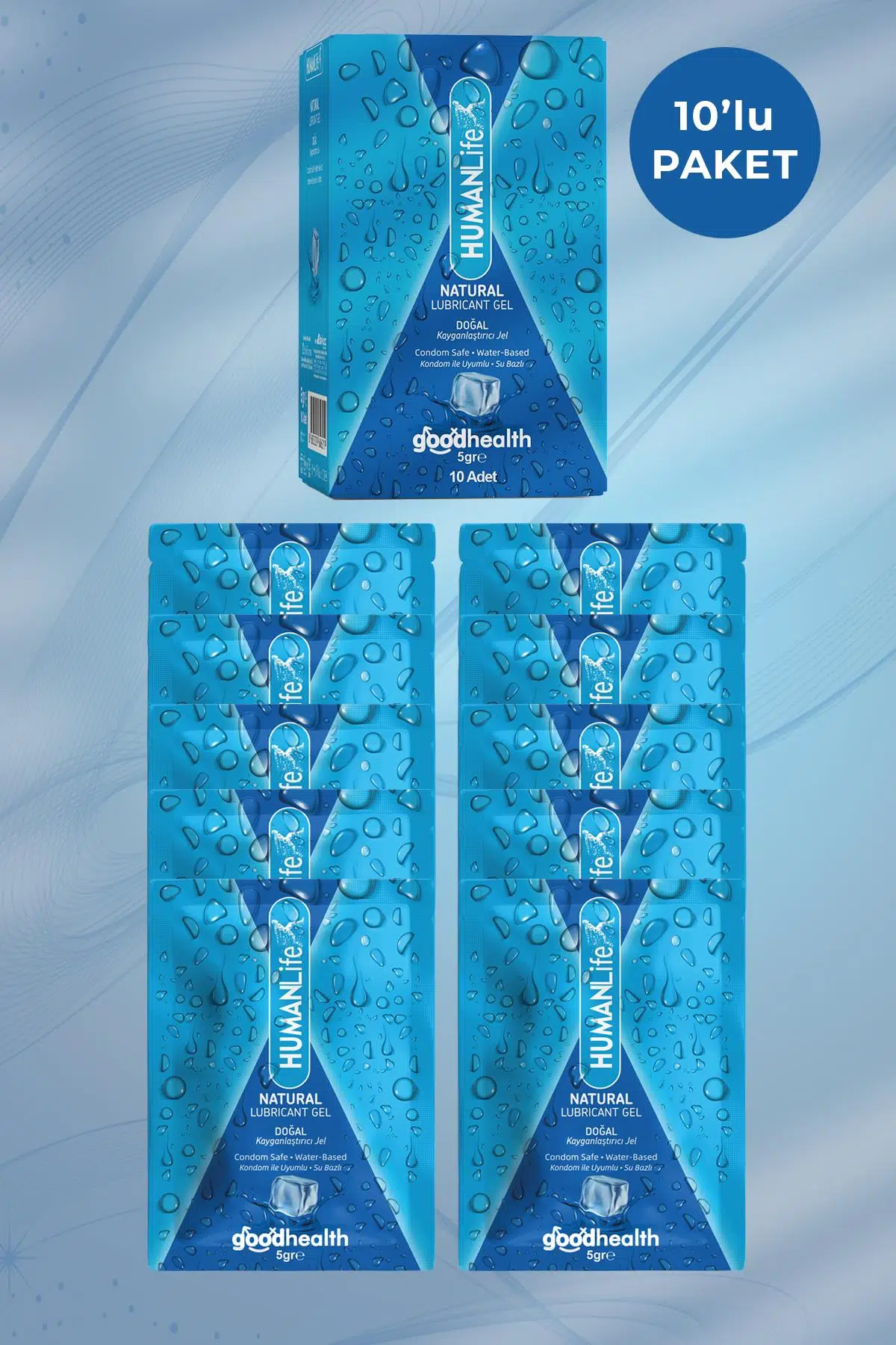 HumanLife 5 gr X 10 Doğal Kayganlaştırıcı Jel Lubricant, 10 adet 5 gramlik paketlerden oluşur. Bu kompakt paketler, seyahatlerde yanınızda taşımak için idealdir ve istediğiniz zaman ve yerde kullanım kolaylığı sağlar.