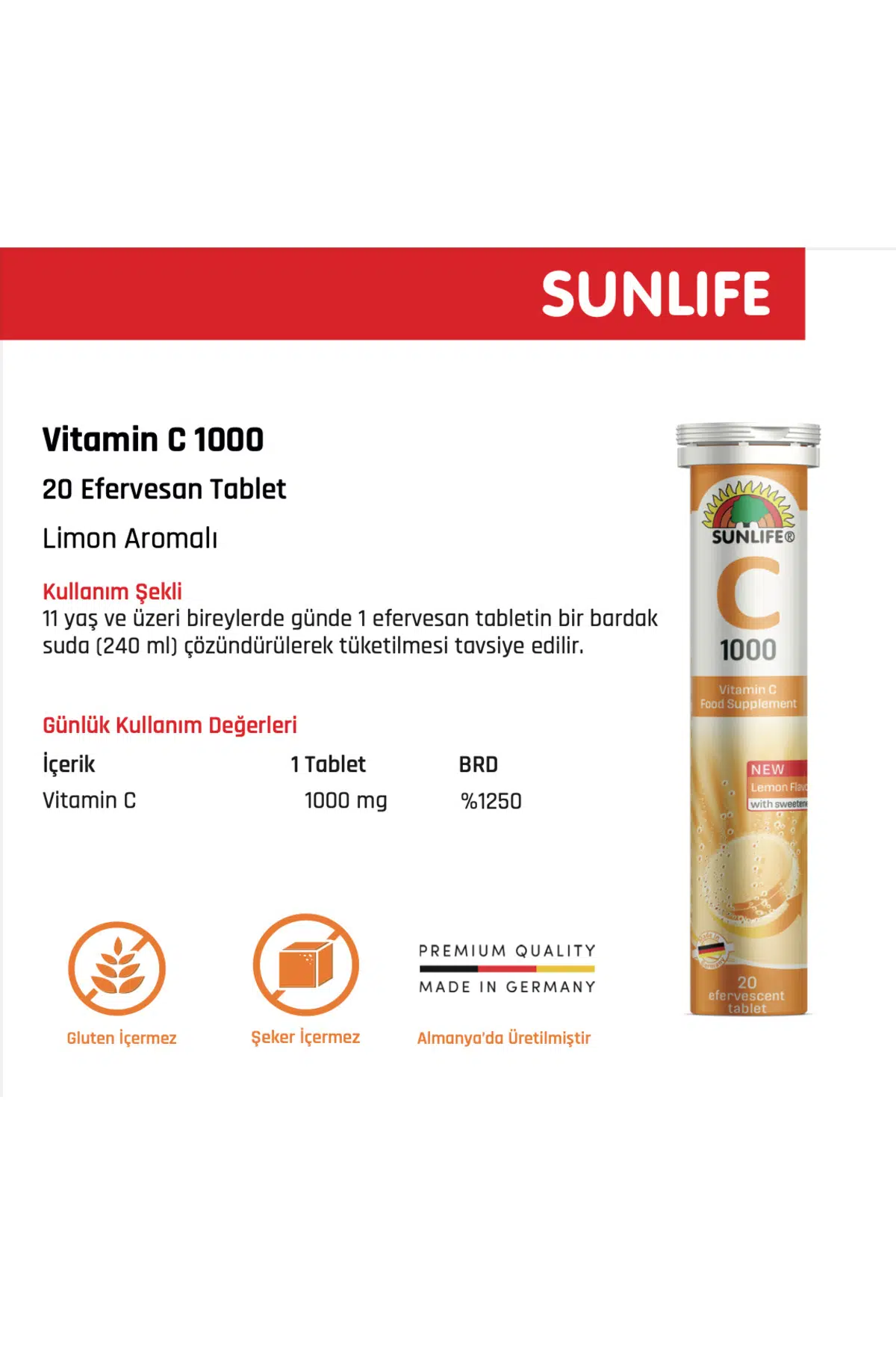 | Etiketler | Sunlife Vitamin C 1000 mg 20 Efervesan Tablet |